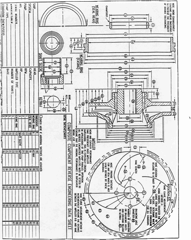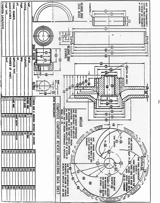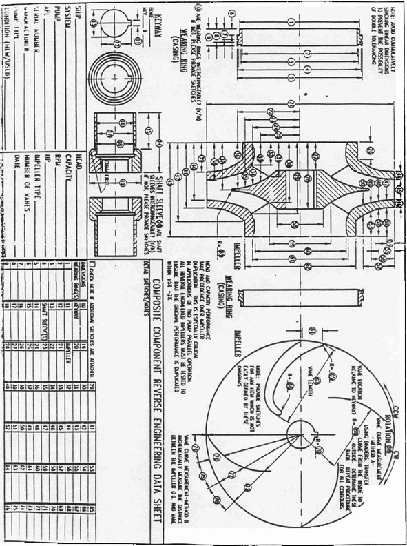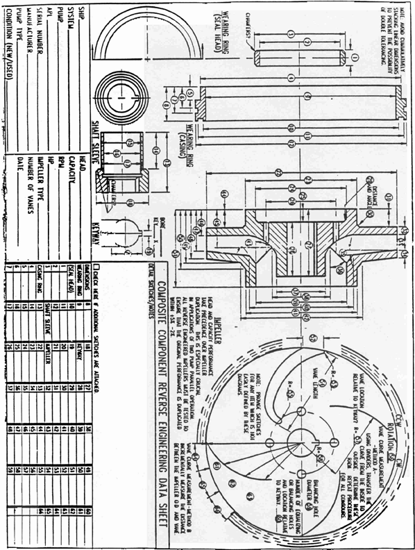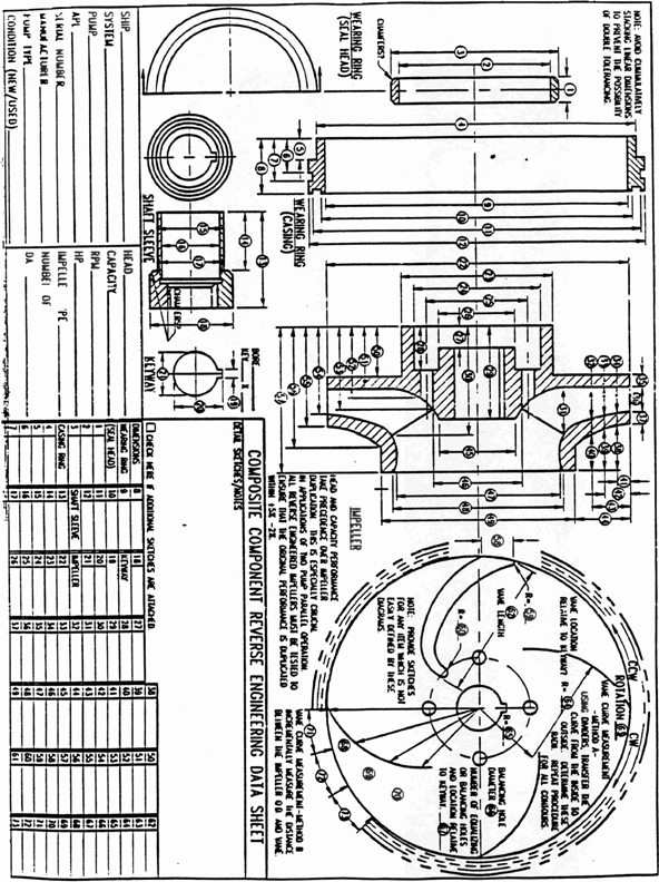 Warren Pumps requires at a minimum, one of the attached data drawings that most closely models your parts filled in completely or the actual metallic part which you wish converted. Additionally, the performance curve and all drawings from the Technical Manual may be required in addition to the drawing or actual parts.